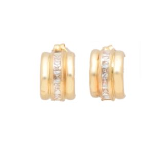 Detaljer: 1par 18k guld örhänge halv creoler med vita syntetiska cz.